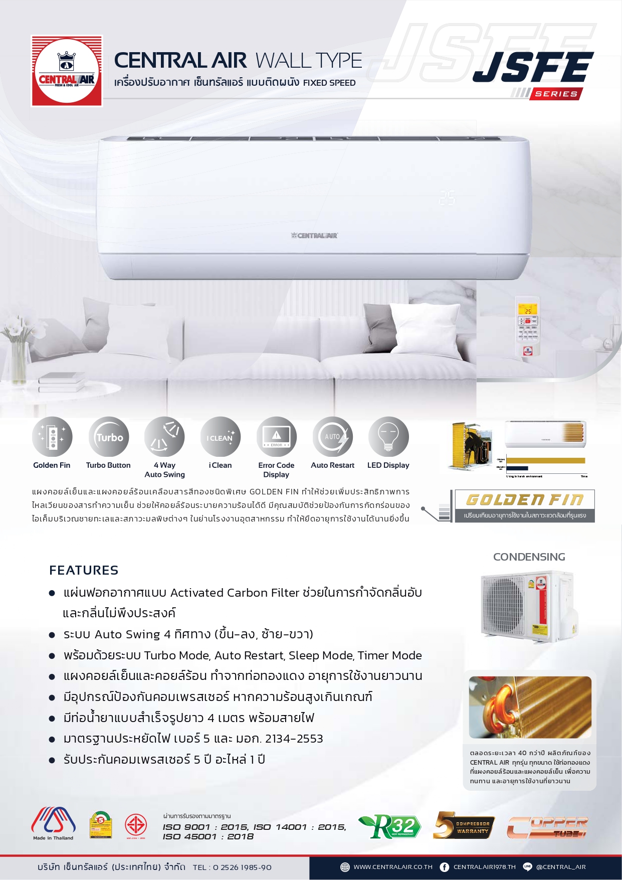 แอร์ Central Air รุ่น CFW-JSFE (ธรรมดา) new2025
