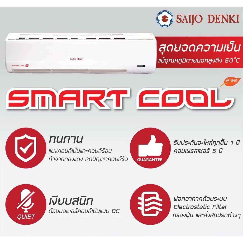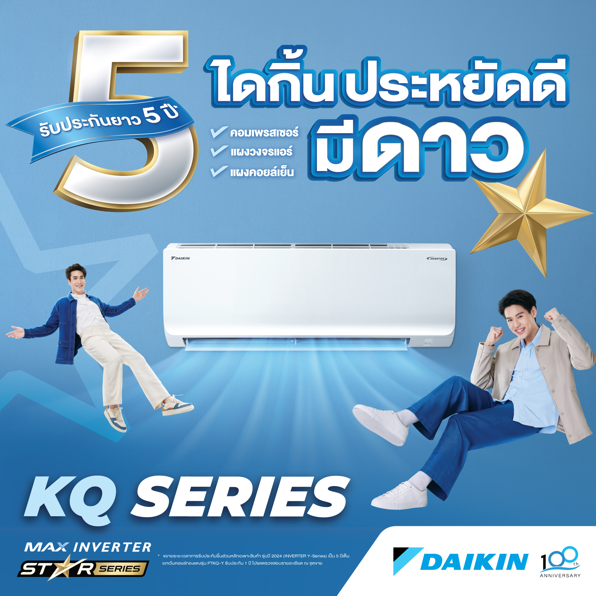 รับประกันอะไหล่ 5 ปี รับประกันคอมเพรสเซอร์ 10 ปี